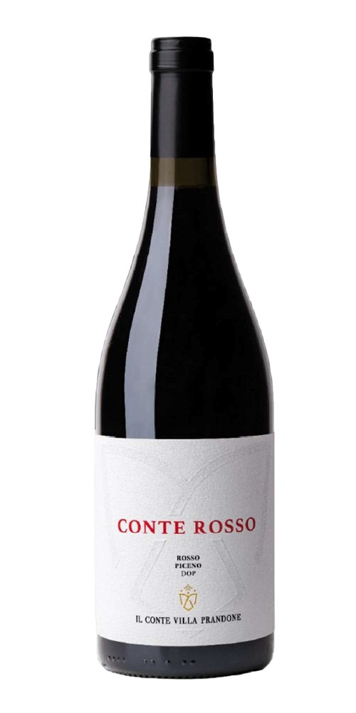 Efter regulativet for DOP appellationen Rosso Piceno skal vinen laves af 35-70% Montepulciano plus 30-50% Sangiovese, og det opfylder Il Conte Villa Prandone med en 50-50 blanding af de to sorter. Montepulciano er Italiens næst mest plantede blå druesort, og netop bjergskråningerne i området, hvor Marche grænser op til Abruzzo regionen, egner sig perfekt til dyrkning af Montepulciano. Vinstokkene har nået en alder på 15 - 20 år, som er ideelt for både mængden og kvaliteten af stokkens drueklaser. Druerne høstes i september med hånden, hvor plukkerne undervejs kan lave en sortering med valg af den bedste frugt. Druerne udblødes med mosten og gæres færdig i løbet af 12 dage i tanke med temperaturkontrol. Efter gæringen modnes den unge vin i rustfri ståltanke i seks måneder før den tappes på flaske. Man står inde for at vinen kan holde sig på toppen i op til otte år. Den funklende vin i glasset har en tæt blårød farvetone som afspejler vinens ungdom. Vinens friske duftpalet er sat sammen af rød og sort bærfrugt med et strejf af violer. Den saftige smag af kirsebær, solbær og ribs lives op af en frisk syre, og smagens lethed og charme slutter af med Sangiovese-druens karakteristiske, ranke tanninstruktur.